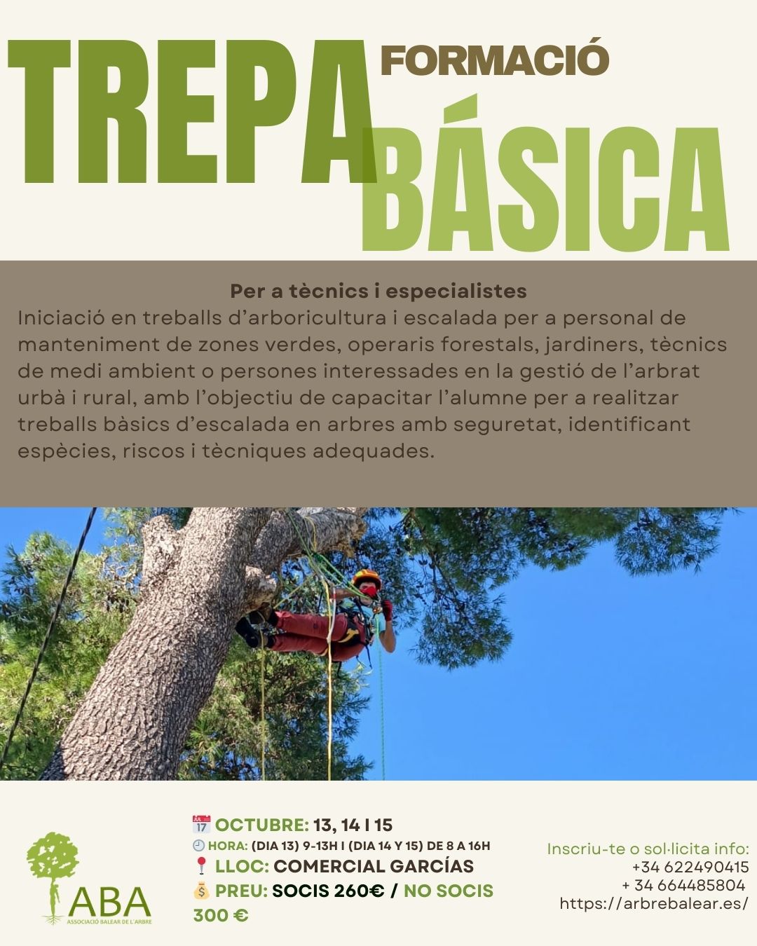 Aquesta formació està pensada per a tècnics, operaris forestals, jardiners i professionals interessats en la gestió de l’arbrat urbà i rural. El curs ofereix una iniciació pràctica i segura en treballs de trepa en arbres, amb l’objectiu de capacitar l’alumne en tècniques bàsiques d’accés, identificació d’espècies, avaluació de riscos i ús adequat del material.