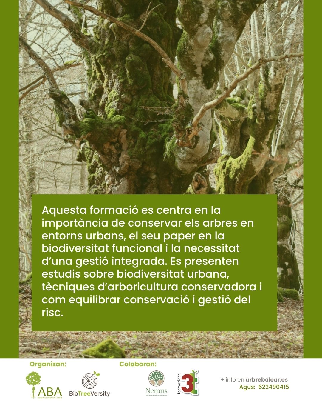 Jornadas y formación práctica sobre Conservación ecológica, gestión integrada y biodiversidad funcional de los árboles en entornos urbanos.