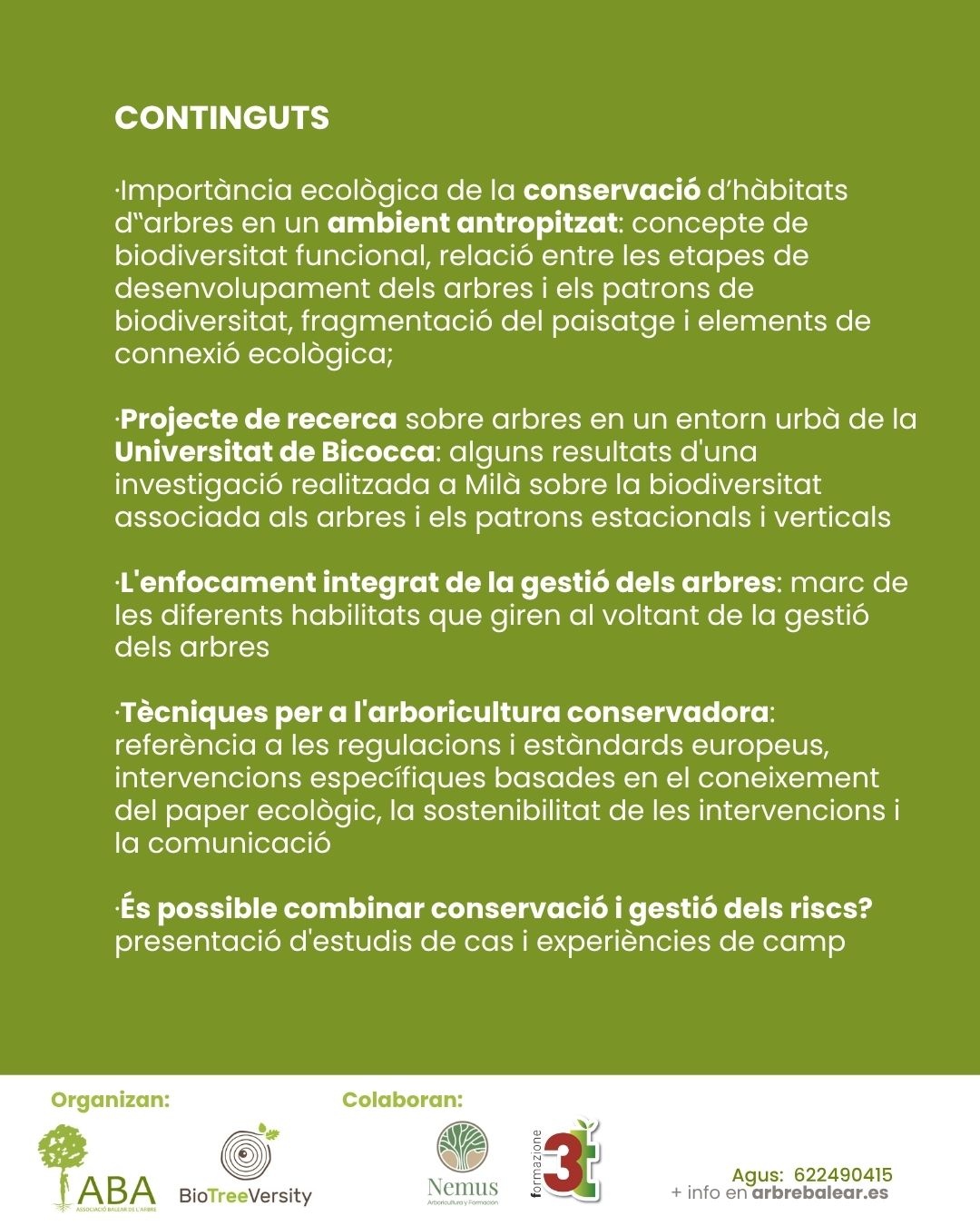 Estas jornadas/formación focaliza sobre la importancia de conservar los árboles en entornos urbanos, su papel en la biodiversidad funcional y la necesidad de una gestión integrada. Se presentan estudios sobre biodiversidad urbana, técnicas de arboricultura conservadora y cómo equilibrar conservación y gestión del riesgo.